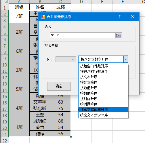 5.点击【合并单元格排序】