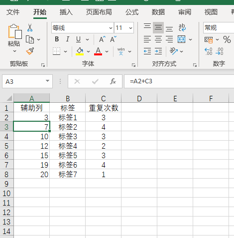 然后在A3单元格输入公式=A2+C3,并下拉填充到底。如下图