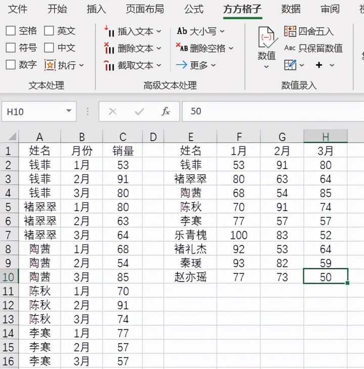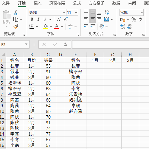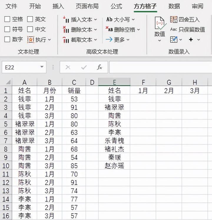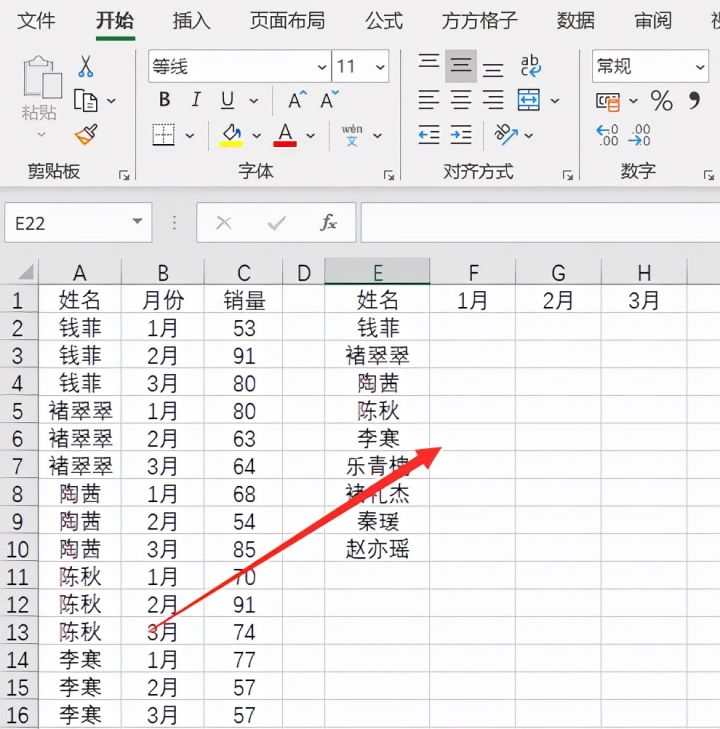 如下图左侧是某公司一维销售表,现在想要将数据从提取到右侧这种二维表中。