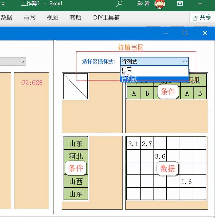然后按照上一步方法,依次选择条件区域,填写区域。如下图
