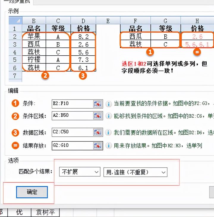 在【匹配多个结果】选项中选择【不扩展】,【用,连接(不重复)】。最后点击确定