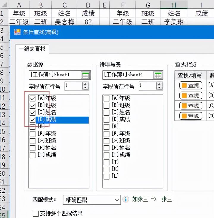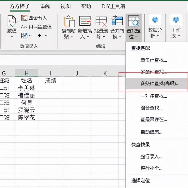 点击【多条件查找高级】