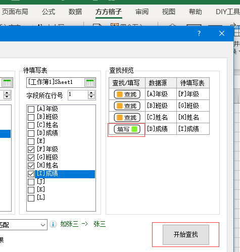 如下图在【待填写表】选项中选择F,G,H,I四列