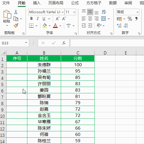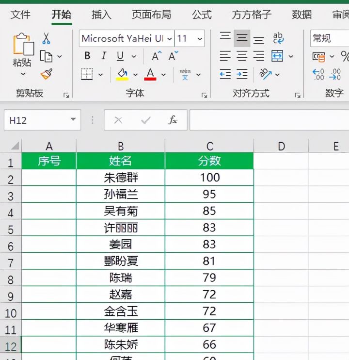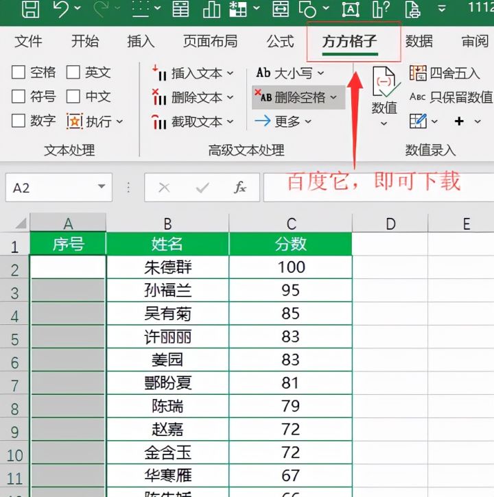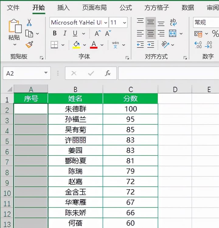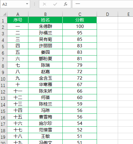 如下图,是某学校成绩表,现在想要在A列快速录入大写数字序列。
