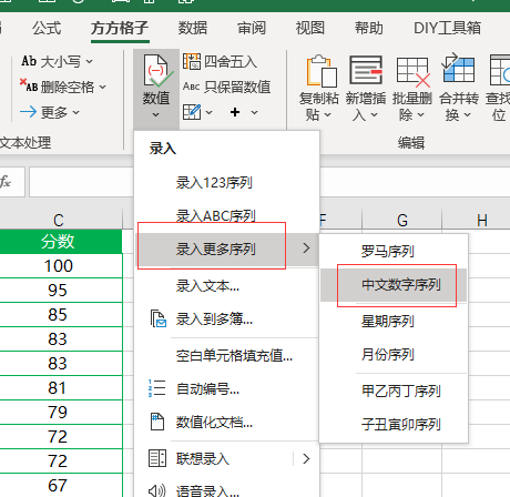 选择【录入更多序列】,然后点击【中文数字序列】。