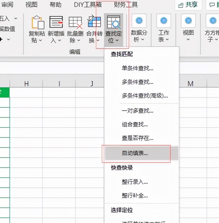 点击【查找定位】,选择【自动填表】