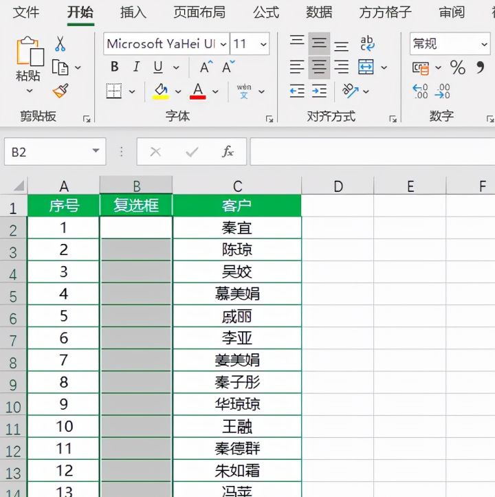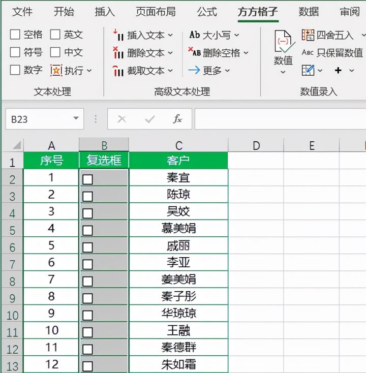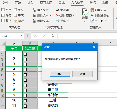 如下图已经完成批量插入复选框,如果想要删除该怎么办呢?全选复选框单元格区域。