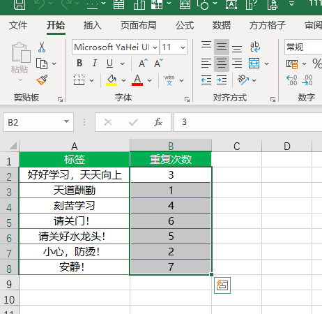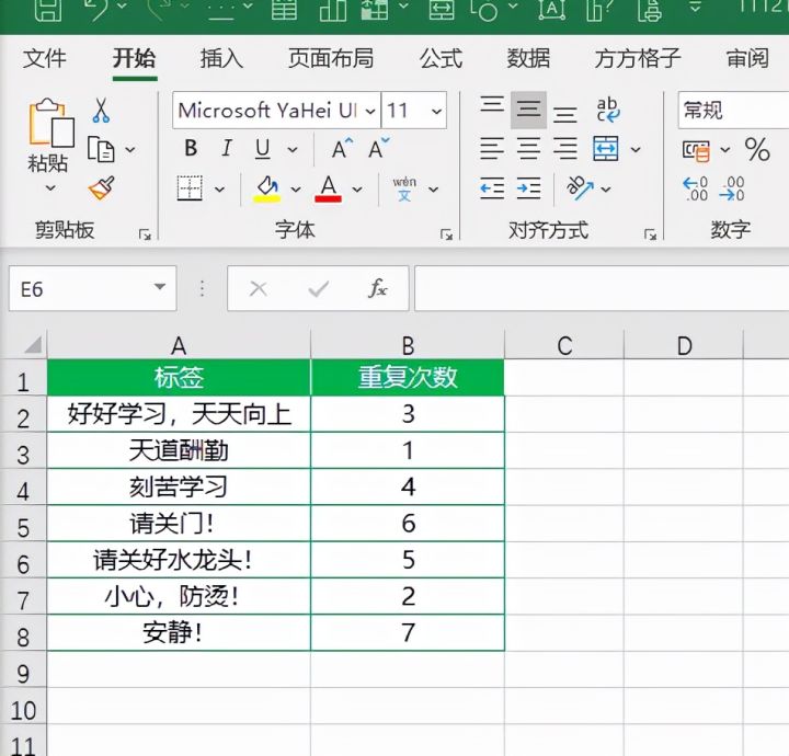 将标语及想要打印的次数录入到Excel中