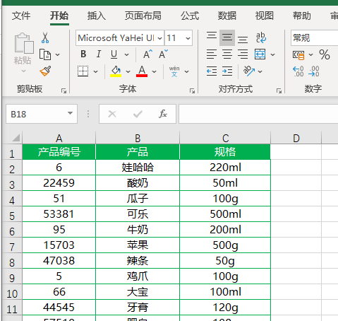 将B2单元格下拉填充到底即可完成产品编号的补位。