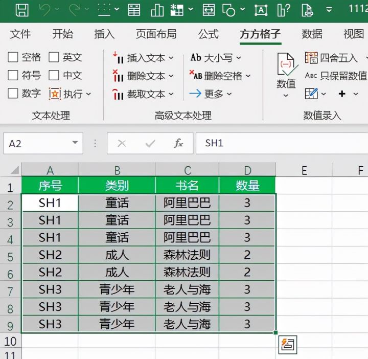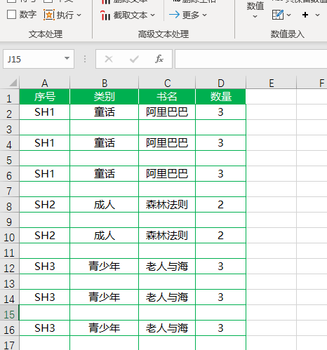 如下图是某书店书籍表格,现在想要将这些数据重复指定次数并用空格间隔开。