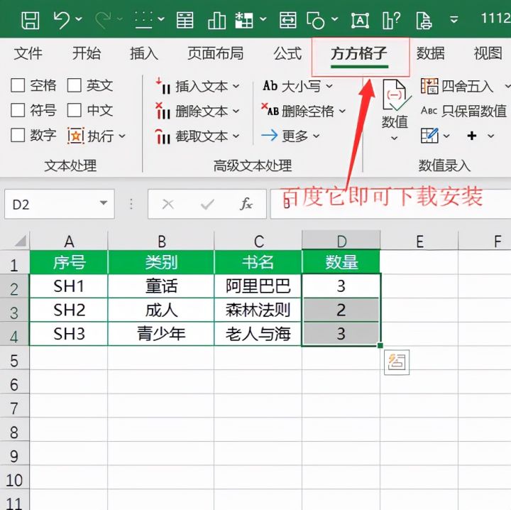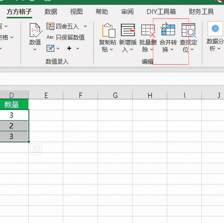 选中D1:D4单元格区域,点击下图选项(Excel工具箱,百度即可了解详细的下载安装方法,本文这里不作详细叙述)