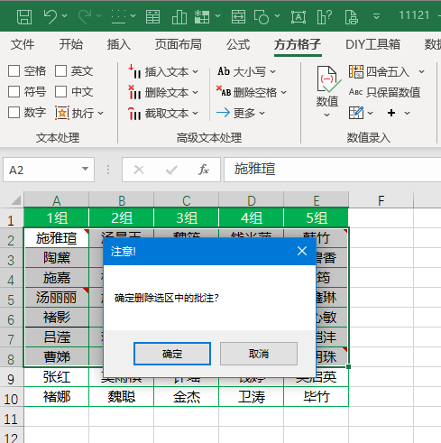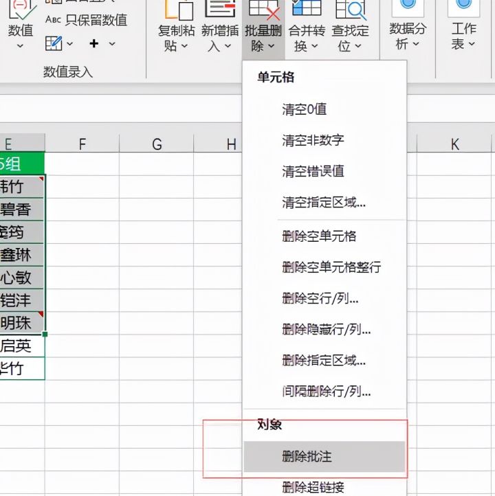 如下图表格区域中含有多个批注,现在想要将这些批注批量删除。