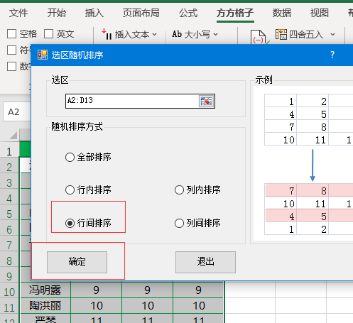 勾选【行间排序】,然后点击【确定】即可完成,如果对排序不满意可以再一次点击确定即可重新排序。