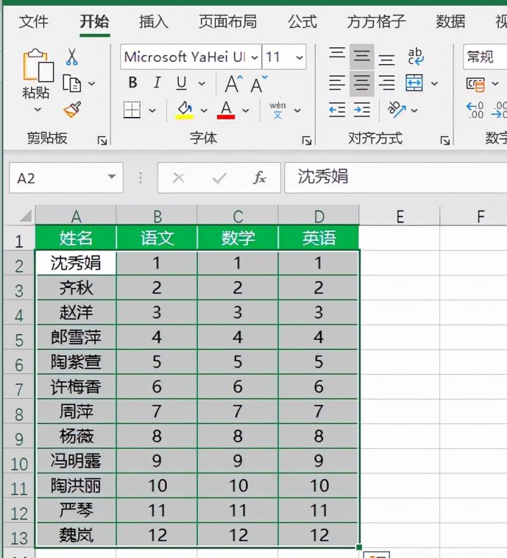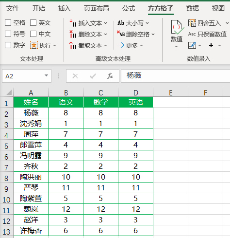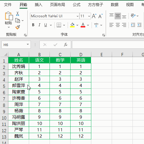 如下图是某班级成绩表,现在想要将表格整行数据随机排序