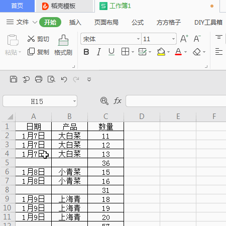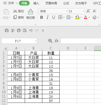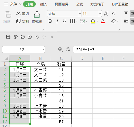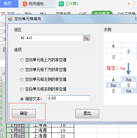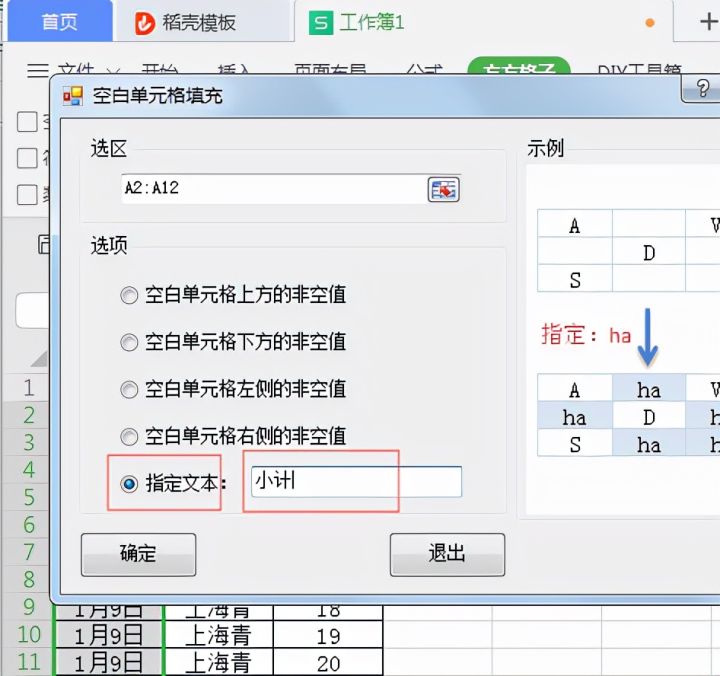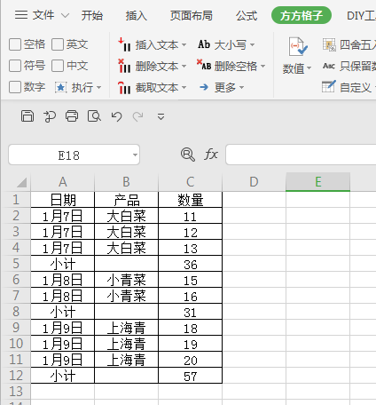如下图,是某公司销售表。现在想要批量在A列空白单元格中录入文本“小计”