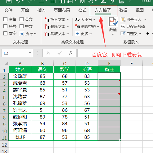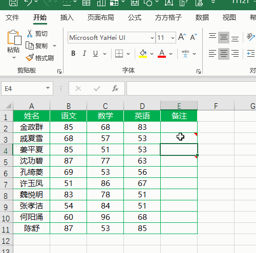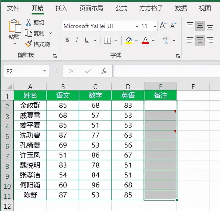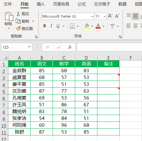 如下图是某班级成绩表,备注列部分单元格含有批注。现在想要删除批注单元格整行。