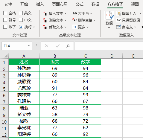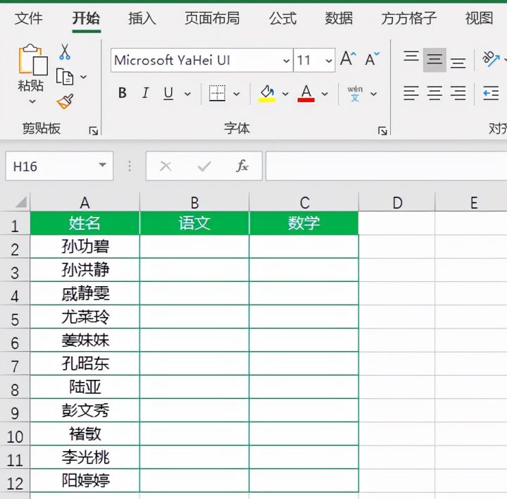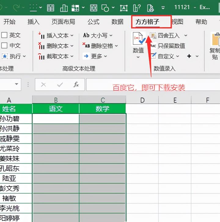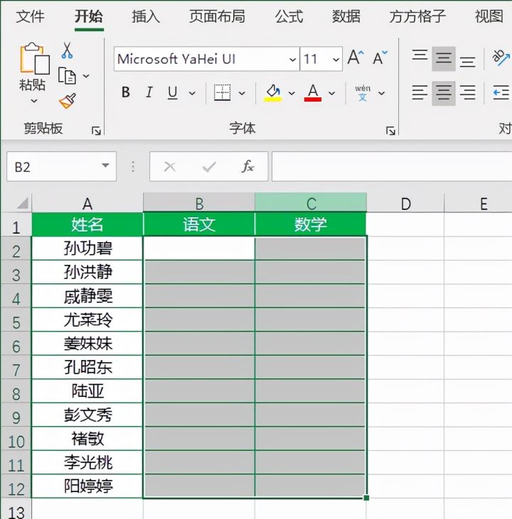 如下图,我们想要在B2:C12单元格区域内随机生成50~100之间的随机数。