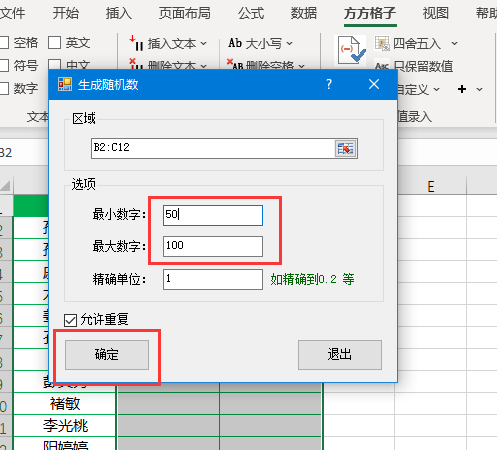 将【最小数字】和【最大数字】分别设置为50,100.然后点击【确定】即可完成。