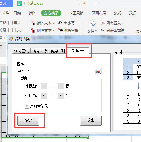 选择【二维转一维】,然后点击【确定】。