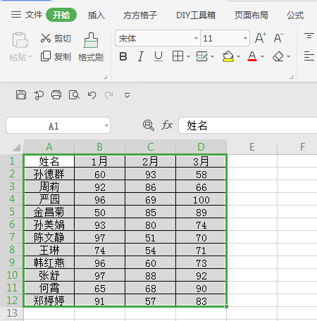 全选表格区域