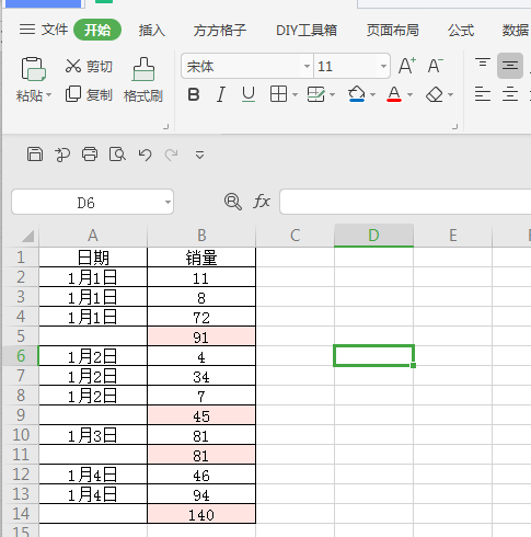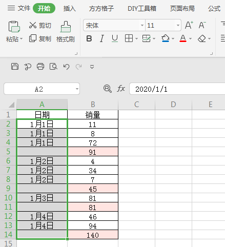 如下图是某公司销售表,现在我们想要在A列空白单元格批量录入文本“小计”。