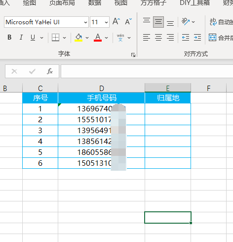 1.打开Excel软件,录入手机号码。