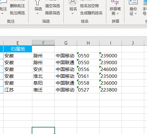 3.接着选中手机号码数据单元格