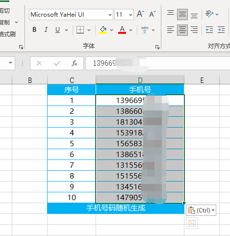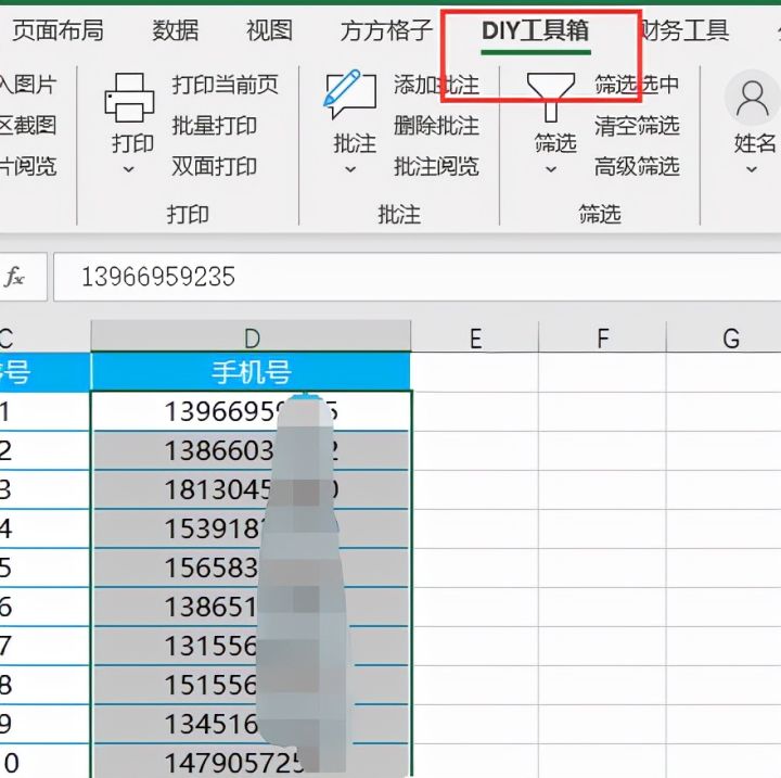 1.首选打开excel文件,选中手机号码所在单元格区域