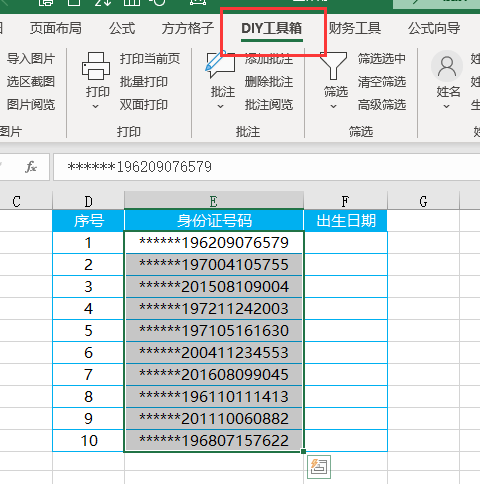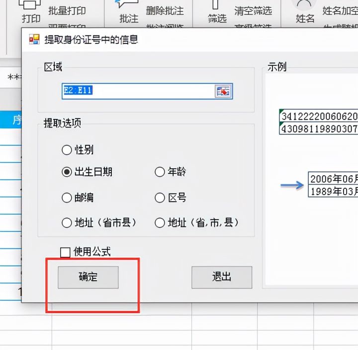 3.点击【身份证】选择【提取出生日期】