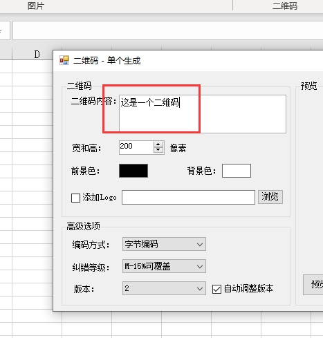 3.在【二维码内容】选项中录入要制作的二维码信息