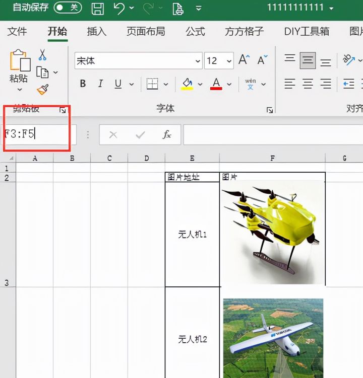 2.在名称框中录入要保存图片的单元格区域,然后按下enter键