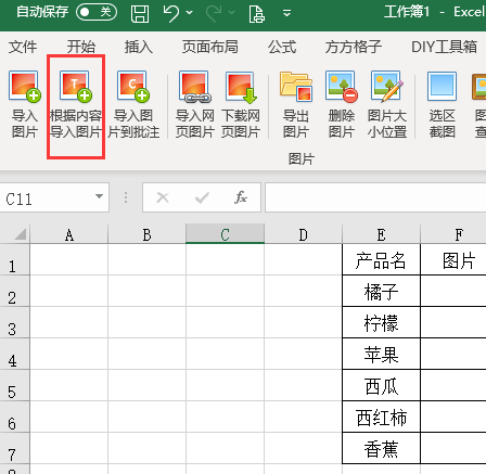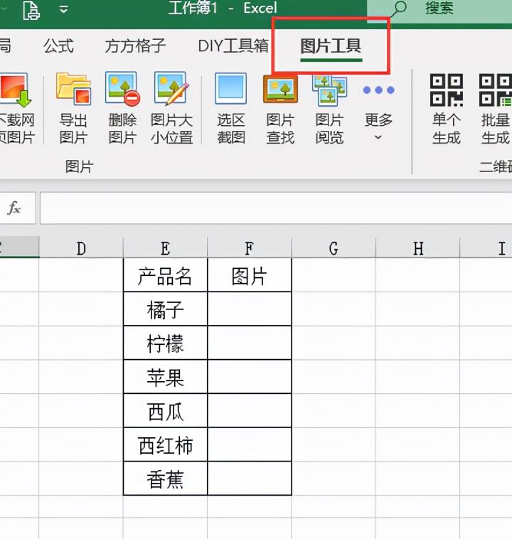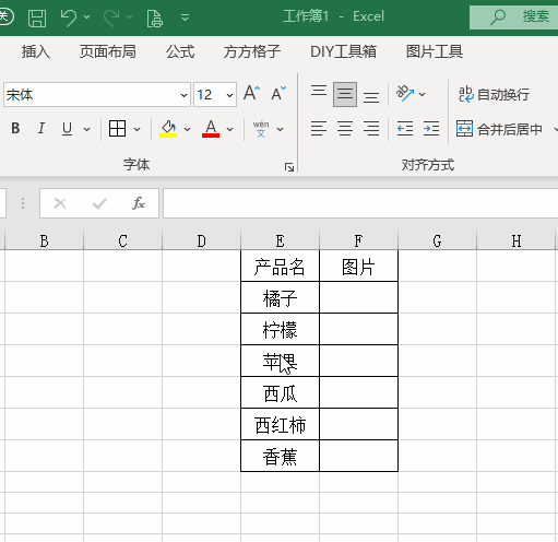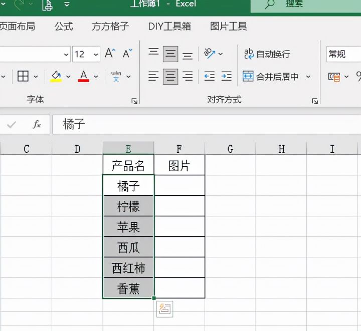 1.打开excel,如下图是某公司产品表格,现在想要快速导入对应的产品图片。首先我们选中产品名称数据单元格。