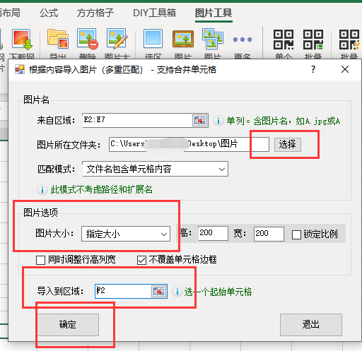 5.点击【选择】添加图片文件夹,在【导入区域】悬系那个中设置图片导入位置,最后点击【确定】即可完成