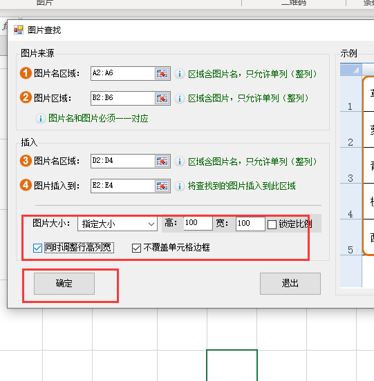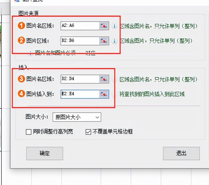 4.在【图片来源】和【插入】选项中分别录入图片区域和图片名称区域