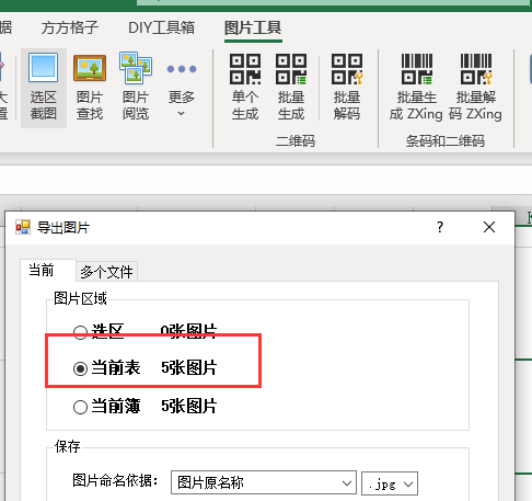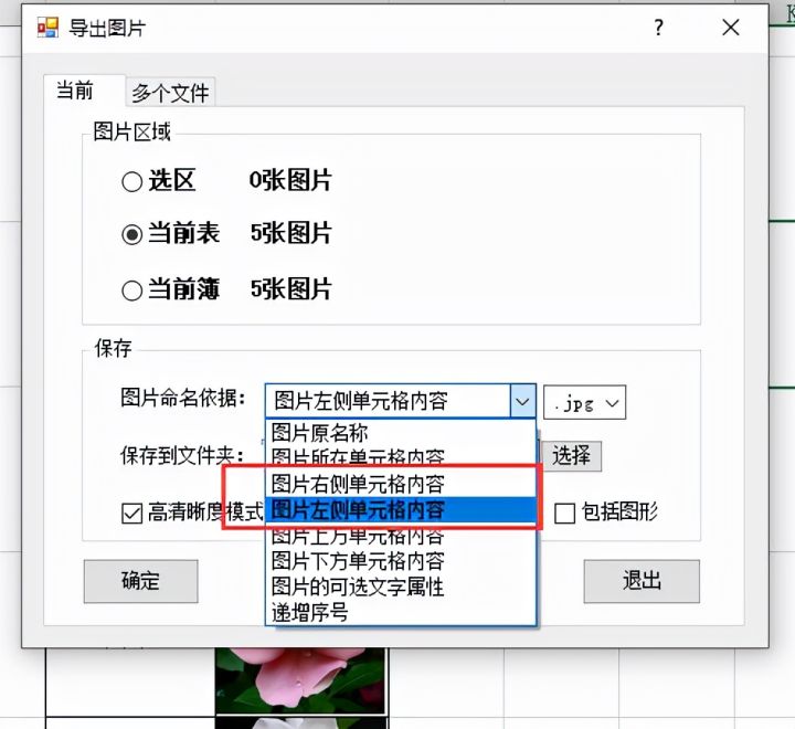 4.在【图片命名依据】选项中选择图片左侧单元格内容