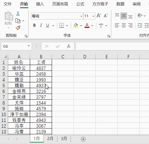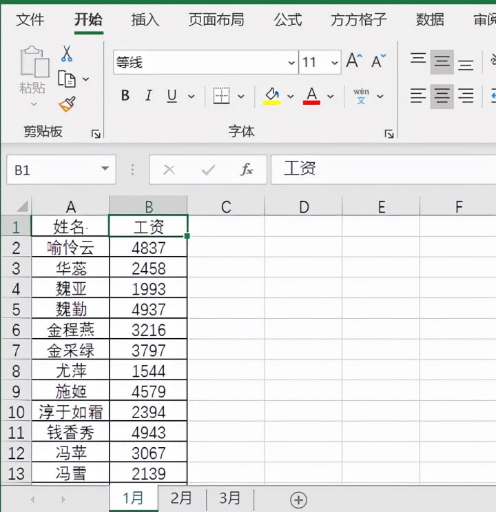 1.如下图是某农场三个月工资表,现在我们想要快速汇总各个员工三个月的工资合计。