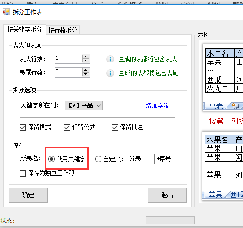 5.【新表名】选项内根据需求勾选使用关键词或者自定义