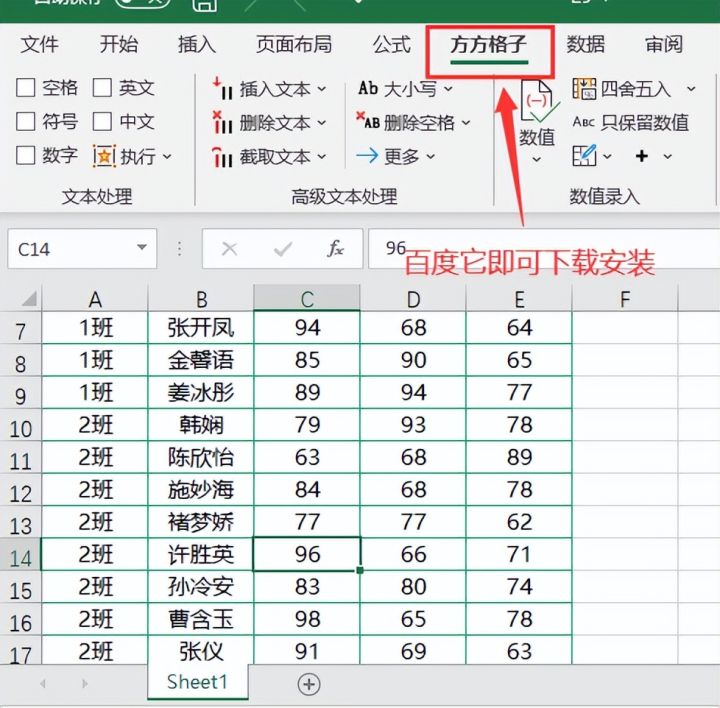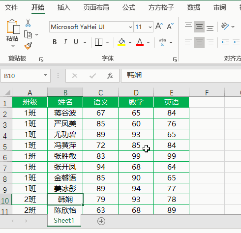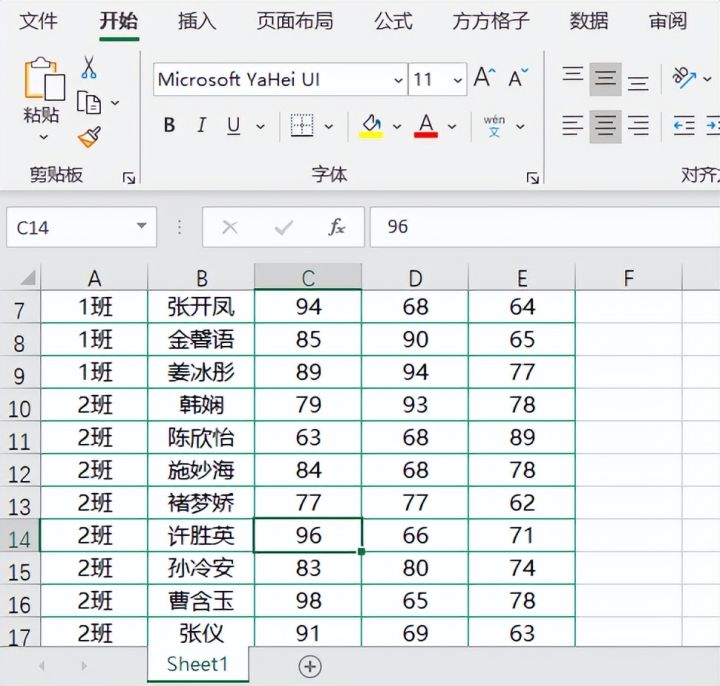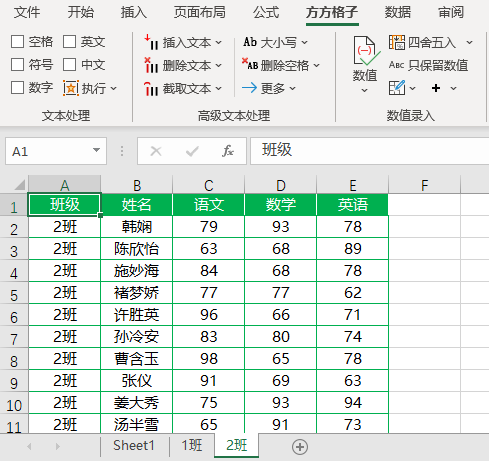 1.如下图是某学校1班和2班两个班级成绩表,现在我们想要快速将这个成绩表按照班级的不同分别拆分为两个工作表。