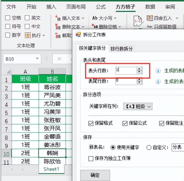这篇博客介绍了如何使用Excel工具箱中的汇总拆分功能,将一个包含多个班级成绩的工作表按照班级快速拆分为两个独立的工作表。步骤包括点击汇总拆分,选择按关键词拆分,设置表头行数,最后确认操作,即可实现一键拆分,高效便捷。