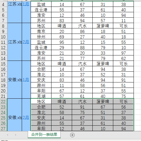 1.如下图含有两个工作簿,每个工作簿中都有两个工作表。现在我们想要将这些工作表合并到一个表格中。