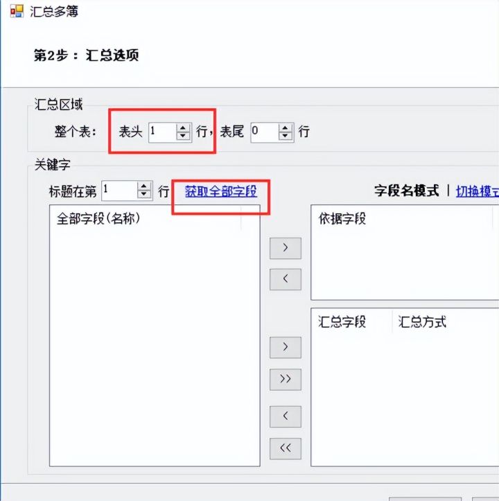 5.将【表头】设置为1,然后点击【获取全部字段】