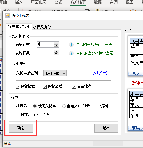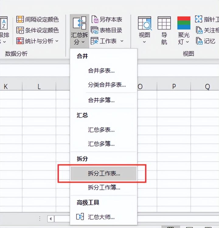 4.选择【拆分工作表】
