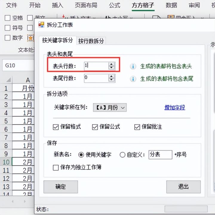5.将【表头行数】设置为1