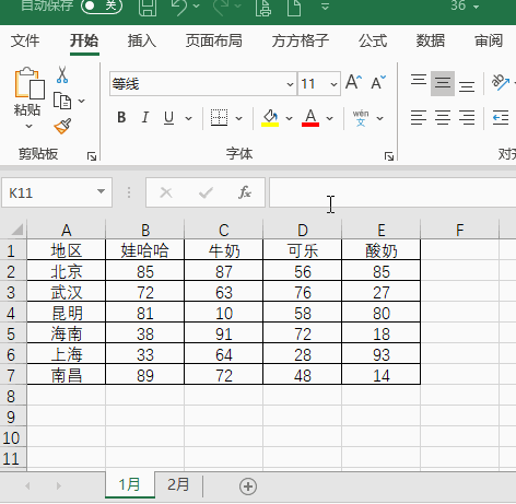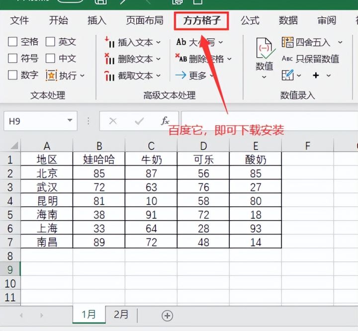 1.如下图工作簿中含有两个工作簿分别是一月份和二月份产品销售表,现在为了方便查看我们想要将这两个工作表合并为一个。