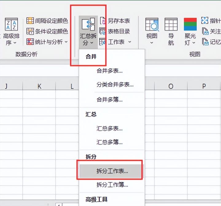 3.依次点击【汇总拆分】、【拆分工作表】
