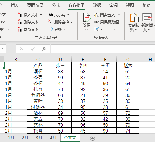 1.如下图工作簿中含有多个工作表,现在我们想要将这个工作簿中的多个表格数据显示在一个表格中。