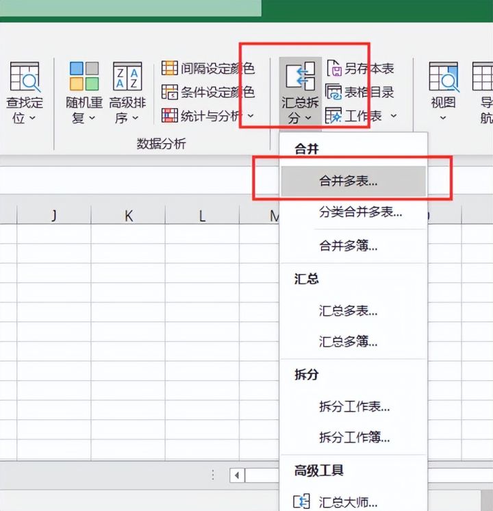2.点击下图选项(Excel工具箱,百度即可了解详细下载安装信息,本文这里就不做详细解说。)