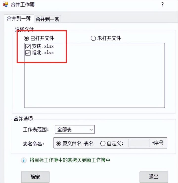 5.勾选【已打开文件】,然后全选工作簿