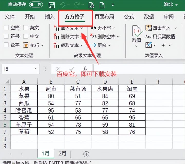 2.点击下图选项(Excel工具箱,百度即可了解详细的下载安装信息,本文这里就不做具体解说)