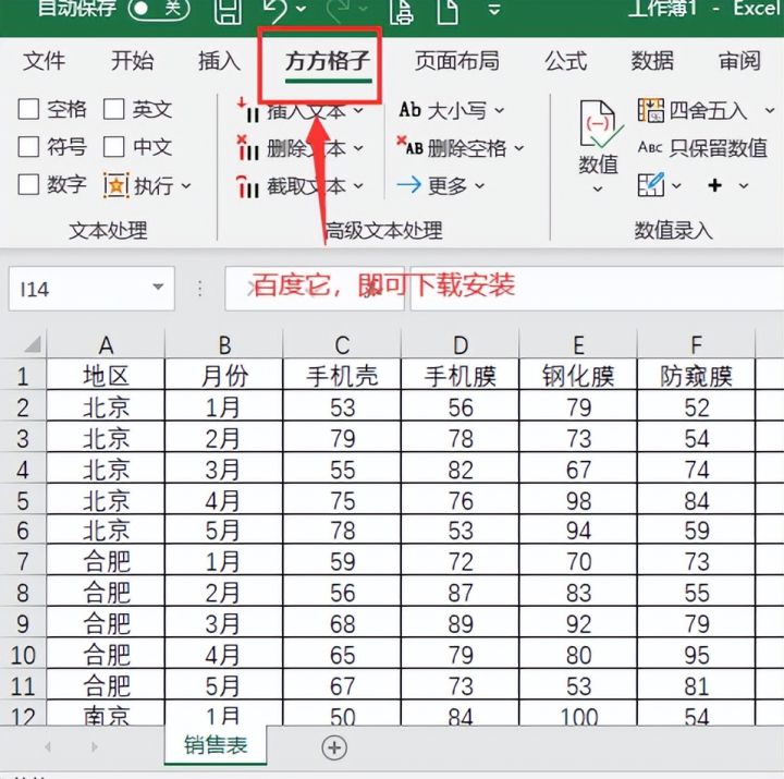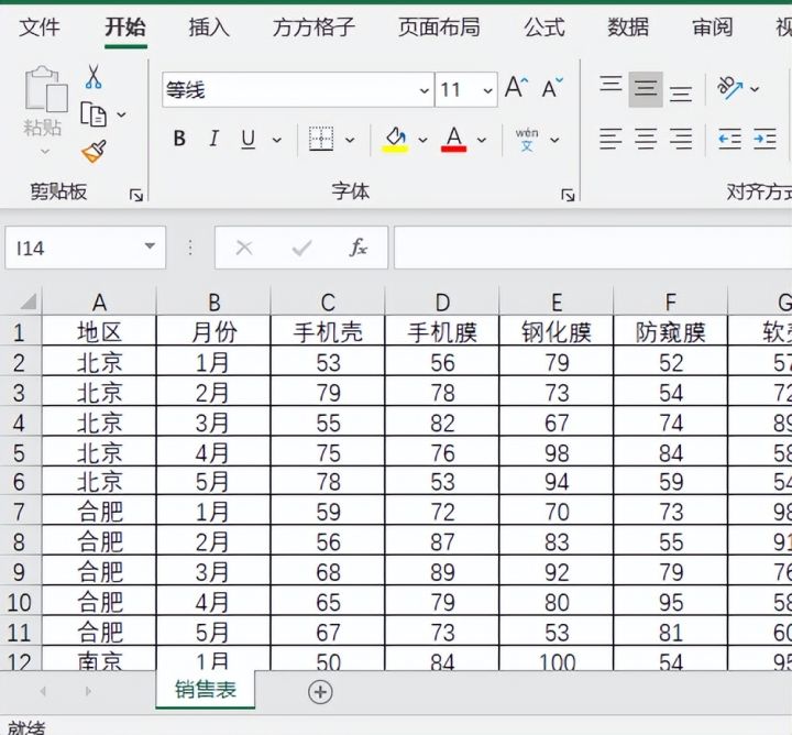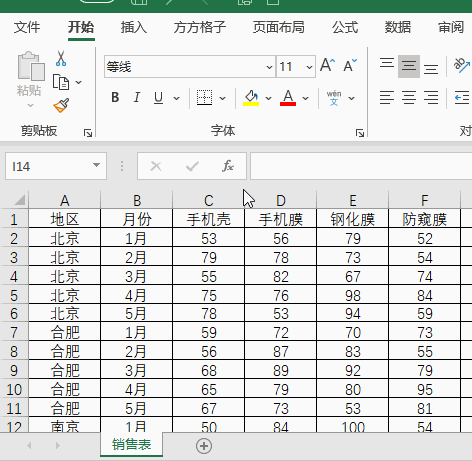 1.下图是某公司的销售表,现在领导要求我们将这个表格按照地区的不同拆分为四个工作簿。